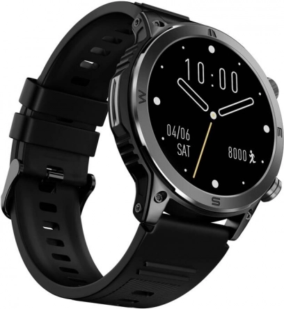 Die Uhr hat ein elegantes Design mit einem robusten Metallrahmen und einem Silikonarmband, das sie ideal für den täglichen Gebrauch macht.