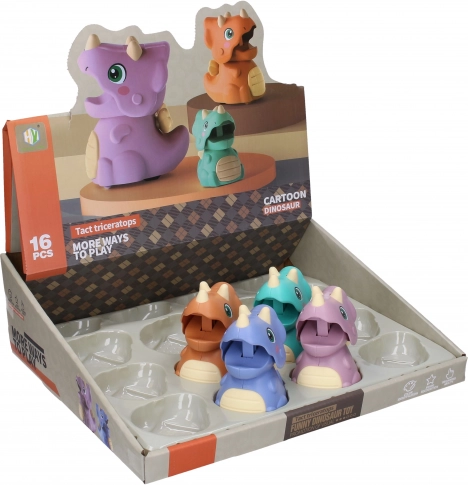 Beleben Sie die Fantasie der Kinder mit dem fahrenden Dino-Tier, das nach dem Zusammendrücken des Oberkiefers nach vorn losfährt. Das vom TRICERATOPS inspirierte Modell begeistert Kinder durch seine Einfachheit und die spaßige Mechanik – keine Batterien, nur drücken und los!