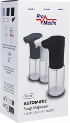 Bewahren Sie Sauberkeit und Komfort mit dem kontaktlosen PROMEDIX-Spender, der mittels eines empfindlichen IR-Sensors automatisch eine genau abgemessene Menge Flüssigkeit abgibt. Geeignet für Flüssigseifen, Desinfektionsgele und -lösungen, Duschgele sowie Shampoos. Das elegante schwarze Design passt in moderne Interieurs und der transparente Behälter erleichtert die Füllstandskontrolle.