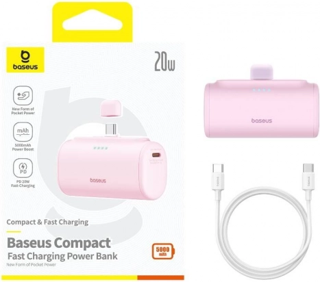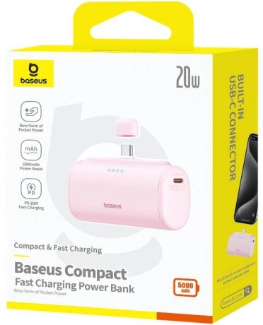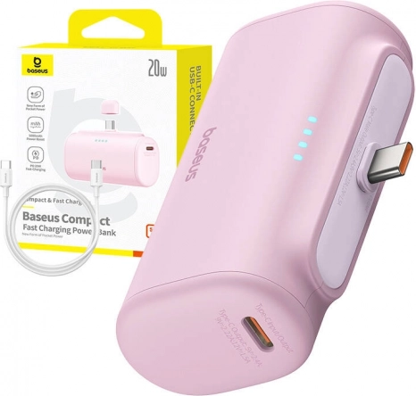 Genießen Sie schnelles und komfortables Laden unterwegs. Die BASEUS Compact Powerbank mit 20 W lädt Ihr Smartphone im Handumdrehen – zum Beispiel ein iPhone 15 in 30 Minuten auf bis zu 57 %. Der integrierte USB‑C-Stecker sorgt für sofortige Verbindung ohne separates Kabel – Laden jederzeit und überall.