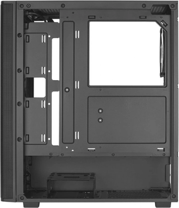 Das vollständig perforierte Frontpanel maximiert die Frischluftzufuhr, während die transparente Seitenscheibe aus gehärtetem Glas die Komponenten zur Geltung bringt.
