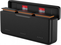 Das 2-in-1-Design kombiniert Ladestation und robustes Transportetui. Dank Magnetverschluss und einem reservierten Platz für zwei TF-(microSD)-Karten bleibt Ihre Ausrüstung auch im Gelände sicher. Die kompakten Abmessungen passen perfekt in den Rucksack – die ideale Lösung für Reisen und lange Drehtage.