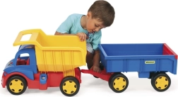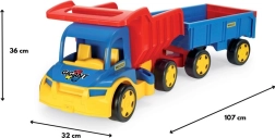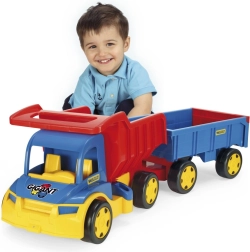 Dieser riesige LKW mit Anhänger ist ideal für alle kleinen LKW-Fans. Die große und stabile Konstruktion bietet Langlebigkeit und Spaß für viele Jahre. Dank des anbringbaren Anhängers können Kinder das Auto leicht ziehen und es für den Transport von Spielzeug oder anderen Gegenständen verwenden. Spaß und Lernen in einem, der LKW stimuliert die kindliche Vorstellungskraft, verbessert die manuelle Geschicklichkeit und fördert die Hand-Auge-Koordination. Hervorragend geeignet für das Spielen drinnen und draußen.