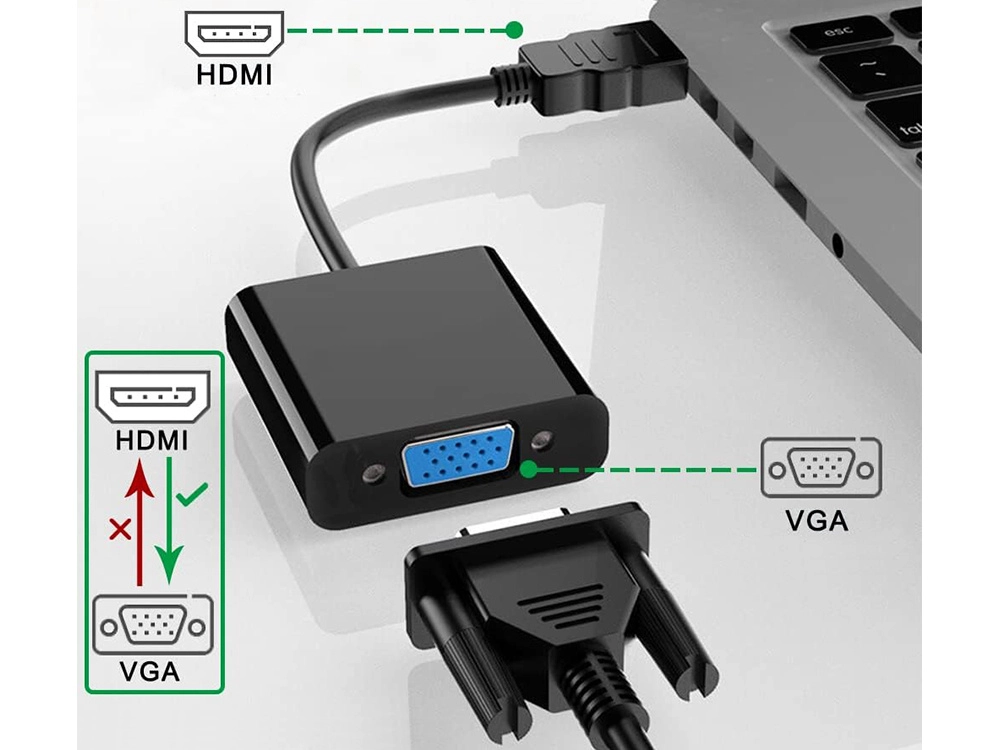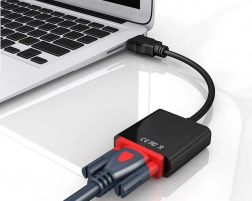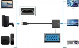 Der Adapter funktioniert im Plug-and-Play-Modus. Einfach zwischen HDMI-Quelle und VGA-Display anschließen und sofort projizieren.