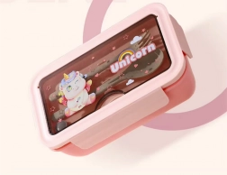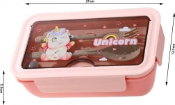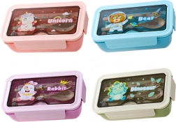 Die Box besteht aus robustem Kunststoff und bietet ein Gesamtvolumen von 1 l – ideal für Frühstück, Mittagessen und Snacks. Die kompakten Abmessungen passen in den Schulrucksack oder die Arbeitstasche. Zur Auswahl stehen mehrere Farben: rosa, blau, lila, grün.