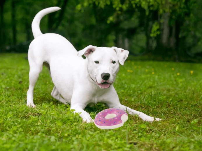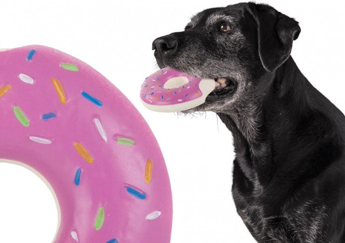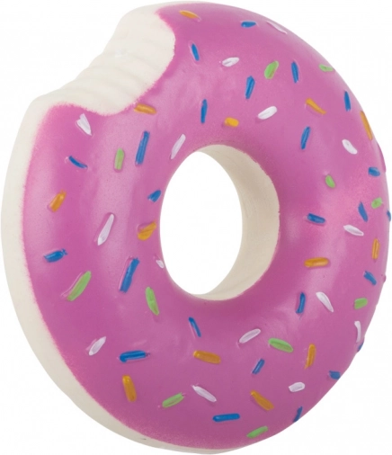Der Gummi-Donut mit buntem „Streusel“-Design ist ein großartiges interaktives Spielzeug für Hunde aller Größen. Dank des eingebauten Quietschers regt er den natürlichen Jagdinstinkt an und motiviert zu längerem Spiel. Das kompakte Maß von 11,5 cm liegt angenehm im Maul und lässt sich gut werfen.