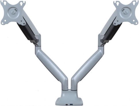 Rüsten Sie Ihren Arbeitsplatz mit einer robusten dualen Gasfeder‑Halterung auf, die Produktivität und Komfort steigert. Die Halterung ist für 17–35″‑Monitore ausgelegt, einschließlich Ultrawide‑ und Curved‑Modelle, und trägt dank des starken Hebelsystems bis zu 15 kg pro Arm. Die ideale Position ist im Handumdrehen eingestellt – von Neigung und Schwenk bis zur Rotation ins Hochformat.