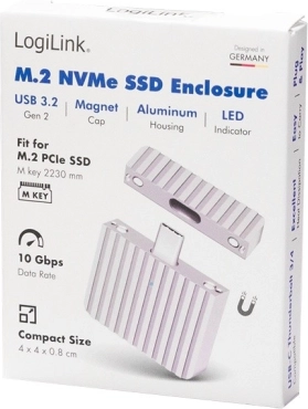 Ultrakompaktes Gehäuse für M.2-NVMe-SSDs kombiniert hohe Leistung und maximale Mobilität. Dank USB 3.2 Gen 2 (10 Gb/s) ermöglicht es blitzschnelles Kopieren großer Dateien, flüssige Videobearbeitung und schnellen Datenzugriff. Unterstützt M.2-NVMe-Laufwerke mit M‑Key‑Slot 2230 und Verbindung über USB‑C.