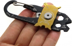 Praktischer Karabiner für den täglichen Gebrauch mit 20 verschiedenen Werkzeugen. Einfach am Schlüsselbund zu befestigen, sodass er immer griffbereit ist.