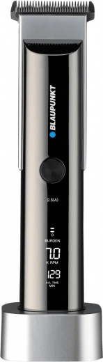 Haarschneidemaschine für Männer, die Funktionalität und Stil schätzen. Minimalistisches und robustes Design mit großem LED-Display und dunklem Chromdesign befriedigt jeden Anwender.
