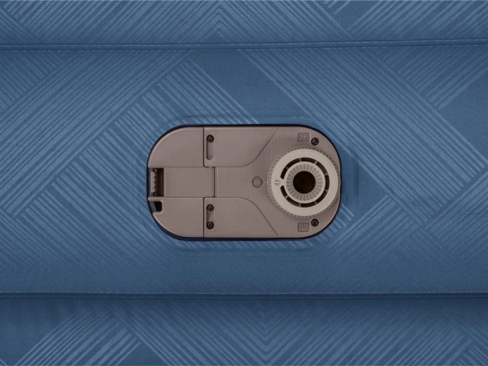 Die integrierte elektrische Pumpe 220–240 V bläst das Bett in etwa 3 Minuten auf. Es besteht auch die Möglichkeit des manuellen/pedalbetriebenen Nachpumpens außerhalb der Reichweite von Stromquellen.