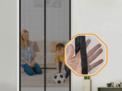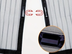 Blitzschnelle Montage und komfortable Nutzung – das Moskitonetz wird mit Klettbändern befestigt, sodass die Installation ohne Werkzeug gelingt. Die mittleren Paneele schließen sich automatisch durch Magnete, was einen bequemen Durchgang auf Balkon oder Terrasse auch mit vollen Händen ermöglicht.