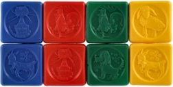 Set mit acht bunten Plastikwürfeln mit Tiermotiven, die die Motorik und Fantasie der Kinder fördern. Dieses didaktische Spielzeug begeistert alle kleinen Jungen und Mädchen.