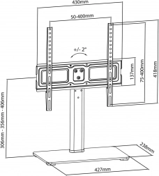 Der universelle Ständer Maclean MC-450 wurde für die Verwendung auf einem TV-Schrank konzipiert und ist mit Fernsehern von Marken wie Sony, LG, Samsung, Philips und anderen kompatibel. Die Bildschirmgrößen sind indikativ und geeignet für TV-Geräte, die den VESA-Standards entsprechen: 75x75, 100x100, 200x100, 200x200, 400x200, 300x300, 400x400 mm.