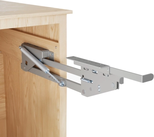 - Robuster Mechanismus sorgt für sanftes und sicheres Absenken und Anheben des Regals