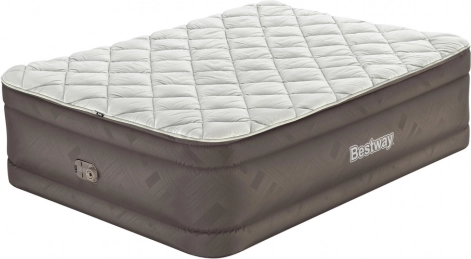 Genießen Sie überall einen erholsamen Schlaf. Das BESTWAY-Luftbett in Queen-Größe bietet stabile Unterstützung, eine angenehme Oberfläche und eine erhöhte Höhe von 51 cm für komfortables Aufstehen. Die integrierte elektrische Pumpe sorgt für eine schnelle und mühelose Vorbereitung des Betts sowie für das Ablassen der Luft.