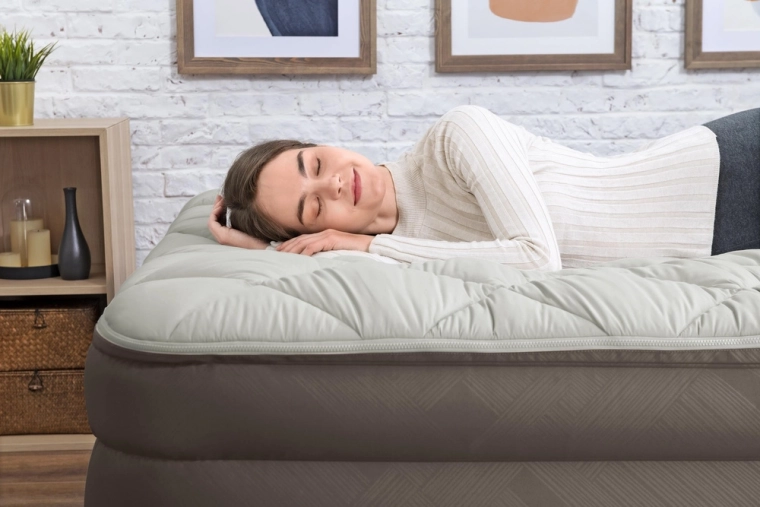 Die eingebaute Pumpe bläst die Matratze in etwa 5 Minuten auf und lässt sie ebenso schnell wieder ab. Kein manueller Aufwand und kein zusätzliches Zubehör nötig.