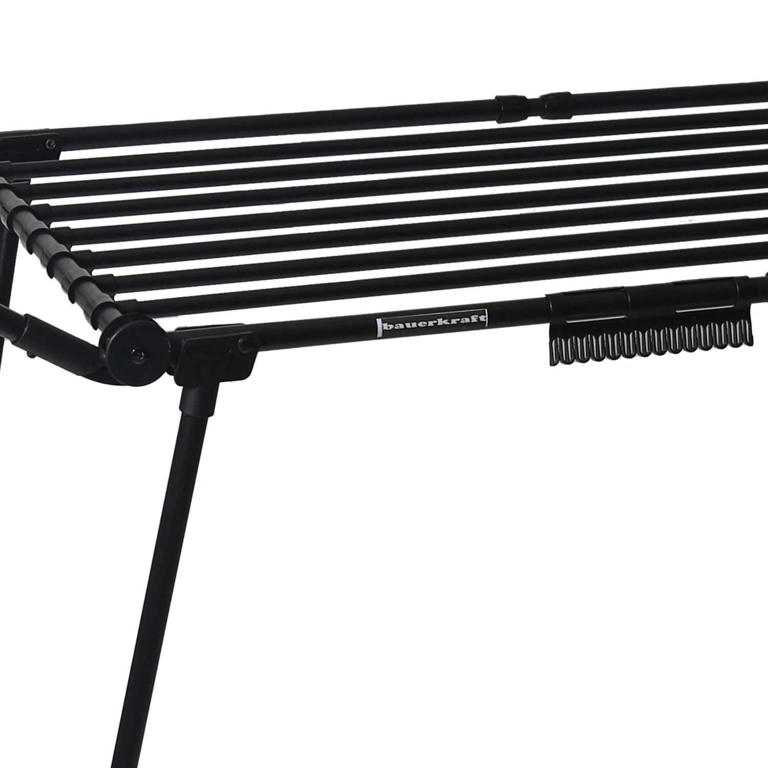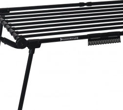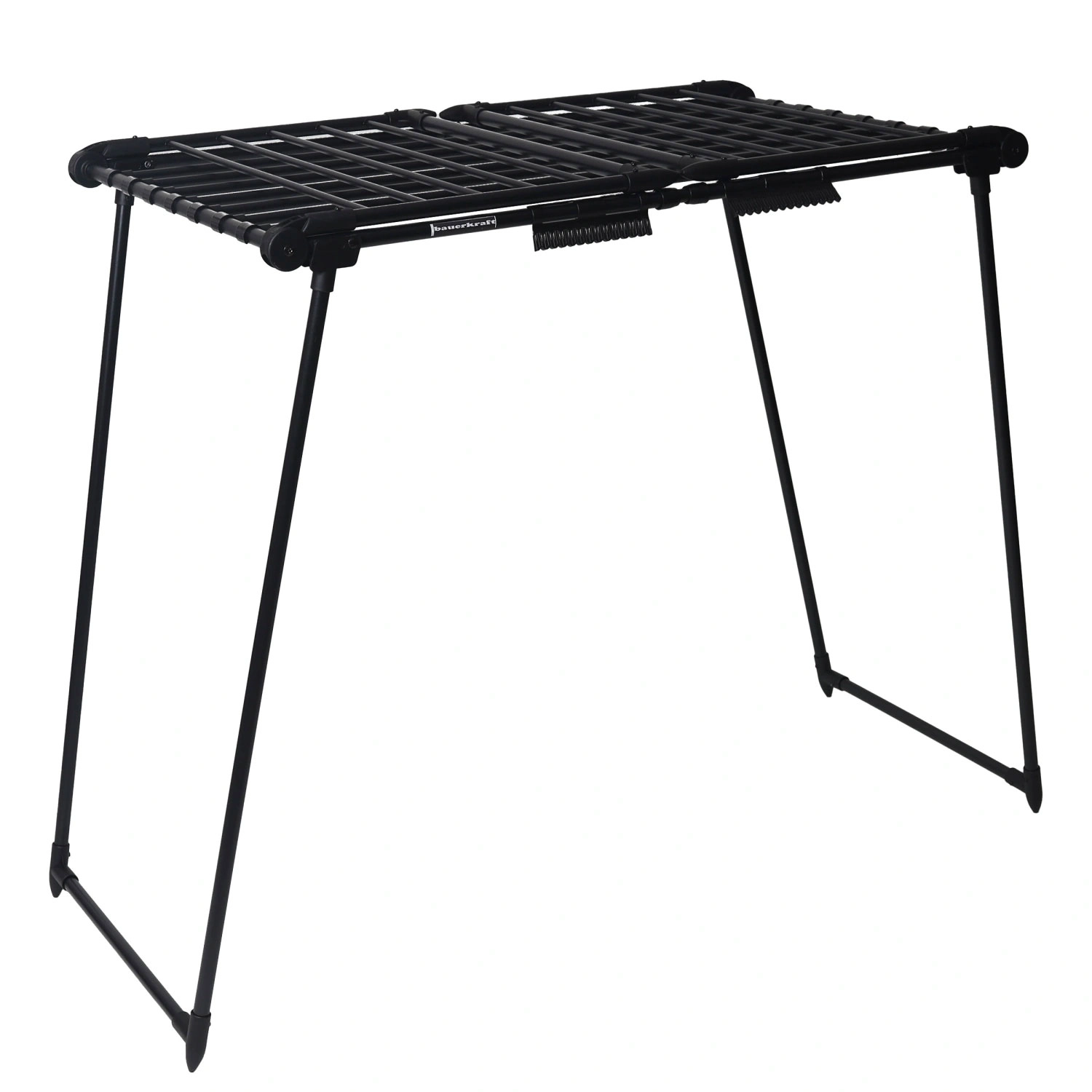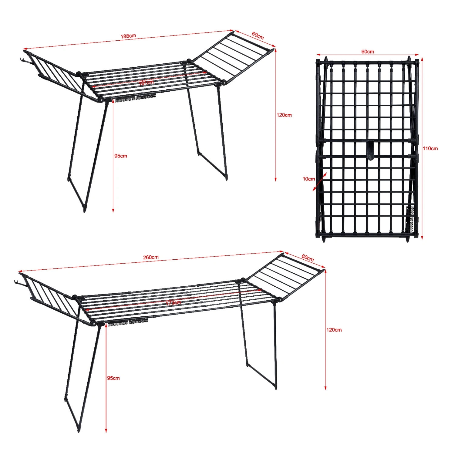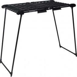 Das platzsparende Design lässt sich schnell zusammenklappen auf kompakte 60 × 10 × 110 cm. Die mattschwarze Oberfläche ist korrosions- und abriebfest und eignet sich sowohl für Innenräume als auch für Balkon oder Terrasse.