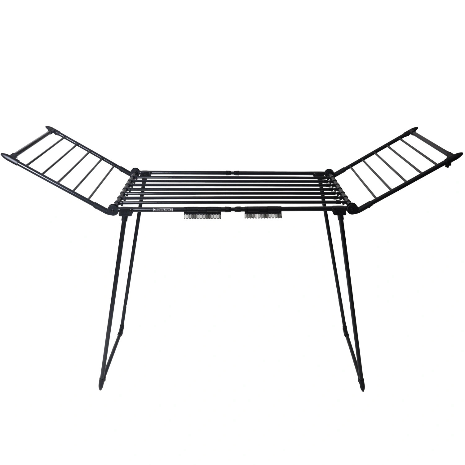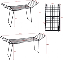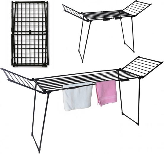 Maximieren Sie das Trocknen ohne Bohren und ohne Aufwand. Dieser Trockner kombiniert eine robuste Konstruktion aus Kohlenstoffstahl mit praktischen Details für den Alltag. Der ausziehbare Mittelteil und die klappbaren Flügel ermöglichen die Anpassung der Fläche an die Waschladung – von Kinderkleidung bis hin zu voluminösen Decken und Pullovern.