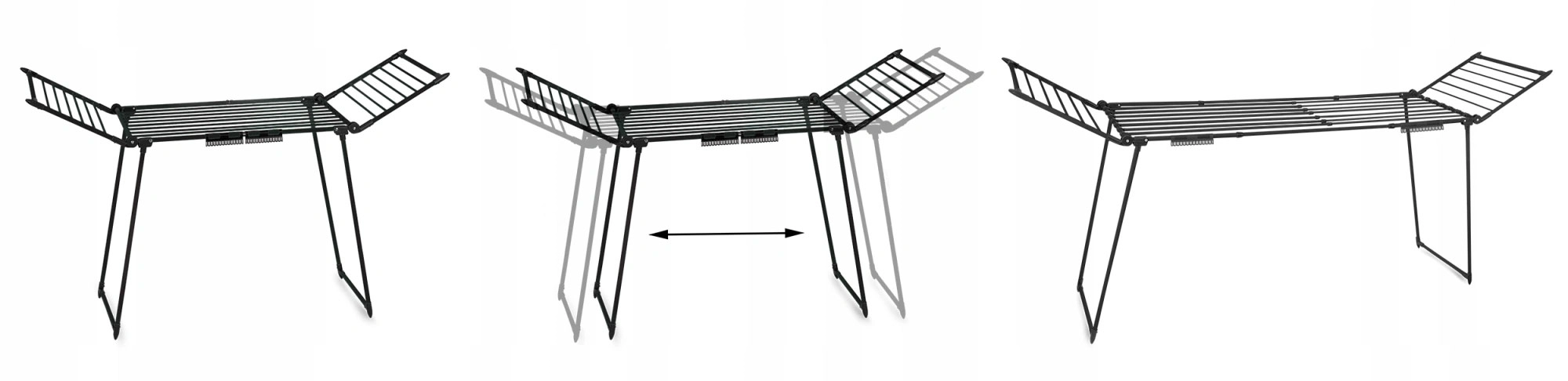 Ausziehbarer Mittelteil und klappbare Flügel bieten Platz auch für große Wäschemengen – von Bettwäsche bis zu dicken Pullovern.