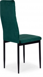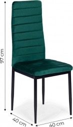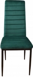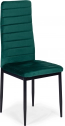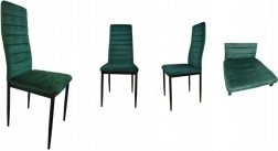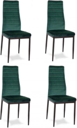 Dieses Set von vier Esszimmerstühlen ist die ideale Wahl für Ihr Esszimmer oder Wohnzimmer. Es wird Sie mit seinem modernen Design und angenehm zu berührendem Grünen Samtbezug überzeugen. Dank der hohen, profilierten Rückenlehne und der hochwertigen Schaumstoffpolsterung bieten die Stühle maximalen Komfort. Die schwarzen Metallbeine verleihen den Stühlen ein elegantes Aussehen und gewährleisten Stabilität.