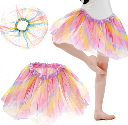 Dieser farbenfrohe Tutu-Rock ist das perfekte Accessoire für Schul- und Kindergartenauftritte, Tanzunterricht und Kostümpartys. Drei Lagen fester, geraffter Tüll halten die schöne Form und schaffen eindrucksvolles Volumen.