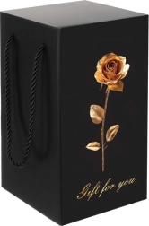 Elegante Geschenkverpackung: Die Rose ist sorgfältig in einer schwarzen Geschenkbox mit goldener Rosenverzierung verpackt, die für jede Gelegenheit bereit ist. Die Box ist mit bequemen schwarzen Griffen ausgestattet.