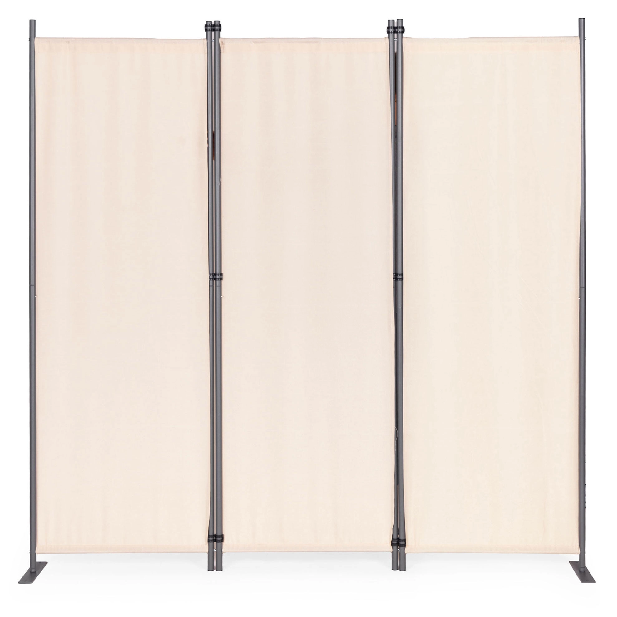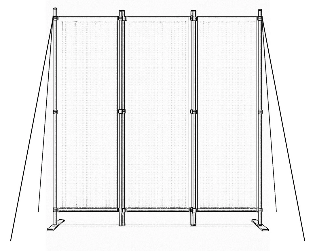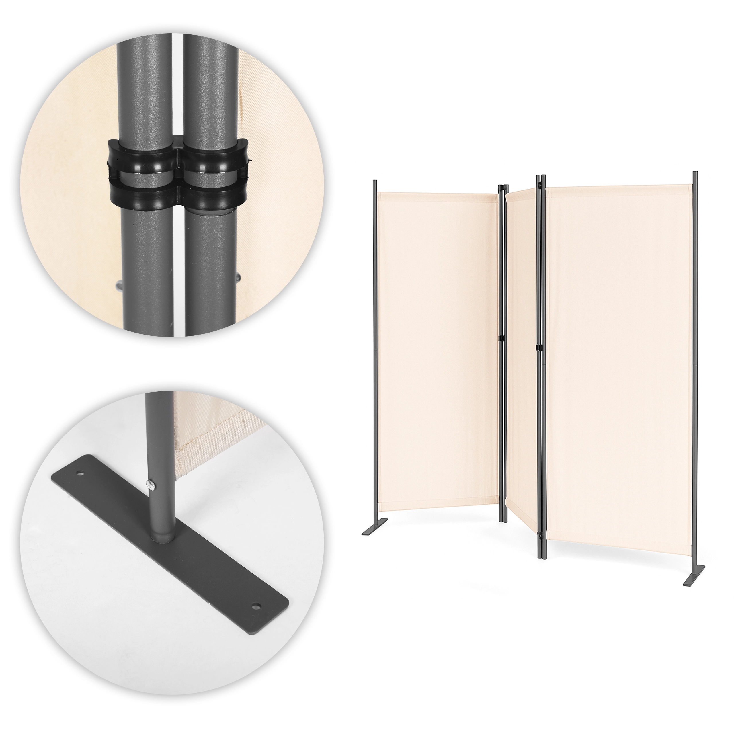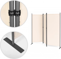 Solide Panelverbindungen ermöglichen ein einfaches Zusammen- und Auseinanderklappen des Paravents. Die stabile Metallbasis hat praktische Montagelöcher für die zusätzliche Befestigung des Paravents am Boden. Dank der breiten Unterstützung ist die Gewichtsverteilung gleichmäßig und verhindert ein Umkippen, auch auf unebenem Untergrund. Montagematerial erhöht die Stabilität und Sicherheit der Benutzer, indem der Paravent auch bei windigen Bedingungen stabil bleibt.