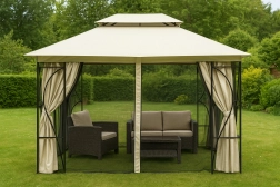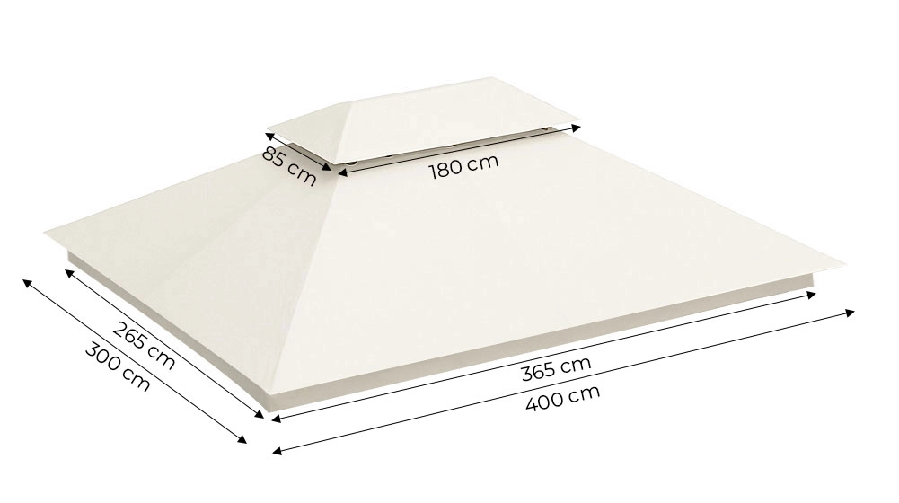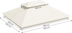 Das Ersatzdach für Ihren Gartenpavillon in der Größe 3x4 m bietet grandiosen Schutz dank des wasser- und UV-beständigen Polyestergewebes 180 g/m². Perfekt geeignet für Gartenveranstaltungen, Grillfeste oder entspannten Nachmittage, erweitern Sie Ihre Gartensaison von Frühling bis Herbst!