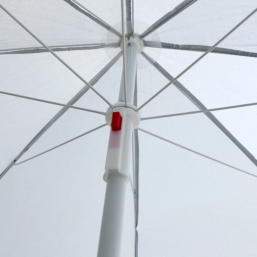 Dieser elegante graue Sonnenschirm ist für die entspannte Erholung der ganzen Familie konzipiert. Die innere silberne Schicht reflektiert UV-Strahlung effektiv und reduziert die Wärmebelastung, sodass es unter dem Schirm auch an heißen Tagen angenehm kühl bleibt. Dank des Höhenbereichs von 140–180 cm passen Sie den Schatten leicht an die Position der Sonne an.