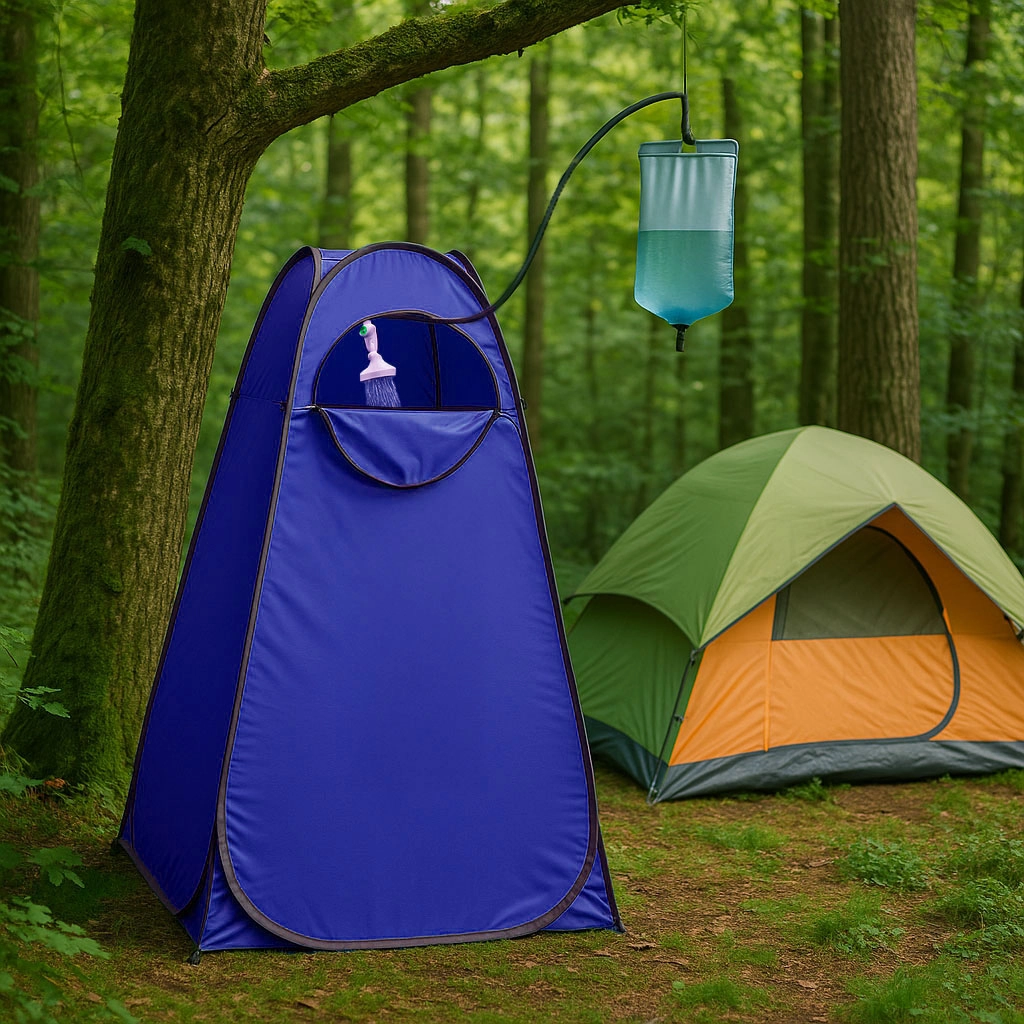 • Duschkabine: Ideal für das Waschen überall. Sie ist mit einem elastischen Gurt für Handtücher und einer Kosmetiktasche ausgestattet. Eine tragbare Dusche kann durch die obere Öffnung eingeführt werden.