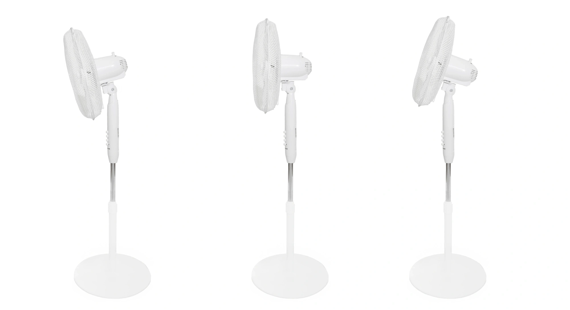 Dank der stufenlosen Höhenanpassung von 110 bis 130 cm können Sie den Ventilator einfach an jeden Raum oder jede Situation anpassen. Ob neben der Couch, dem Bett oder dem Tisch, der Luftstrom kann immer dorthin gelenkt werden, wo er am meisten benötigt wird. Diese funktionale Eigenschaft sorgt für optimale Luftzirkulation im gesamten Raum. Kombiniert mit verstellbarem Neigungswinkel und Oszillation bietet er volle Kontrolle über die Richtung des Luftstroms und die Kühlungsstufe.