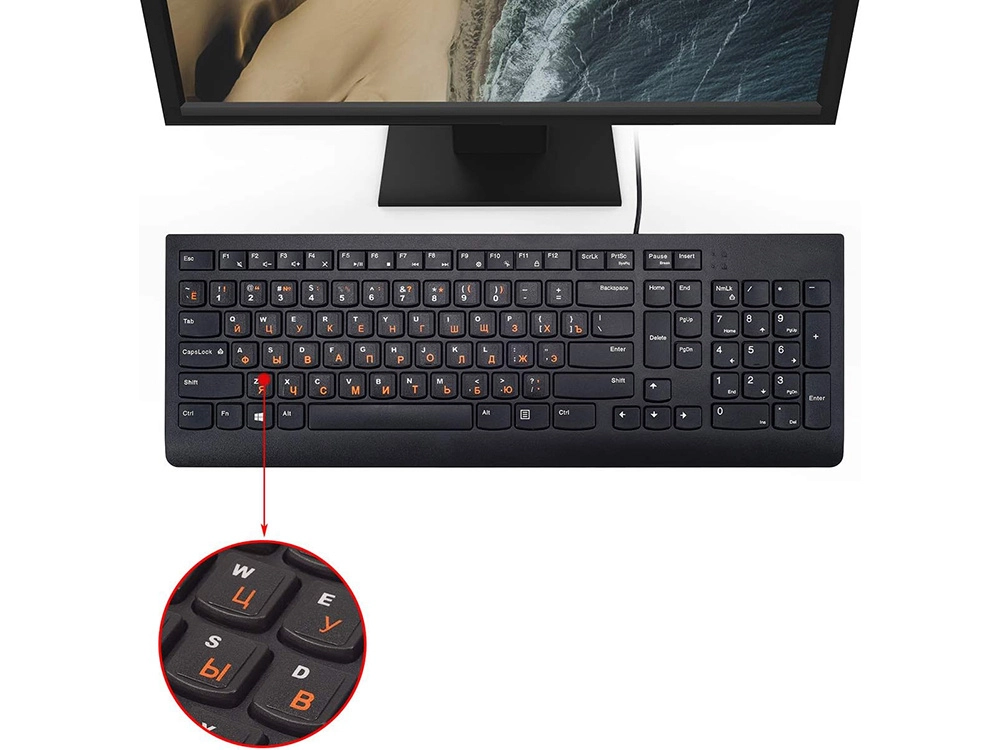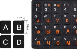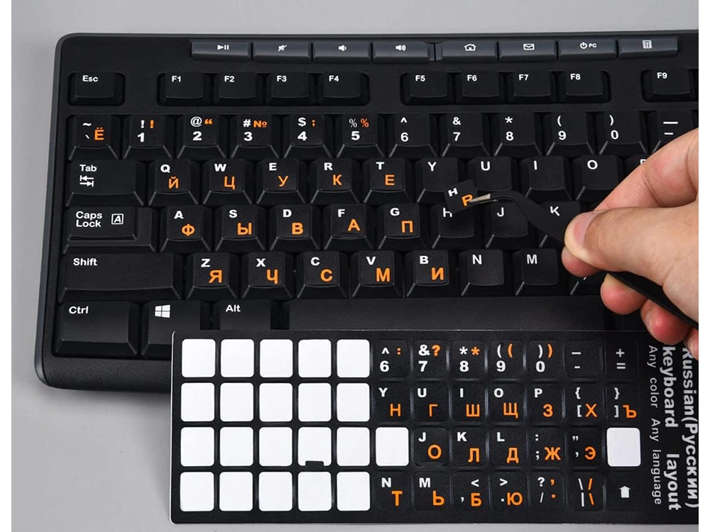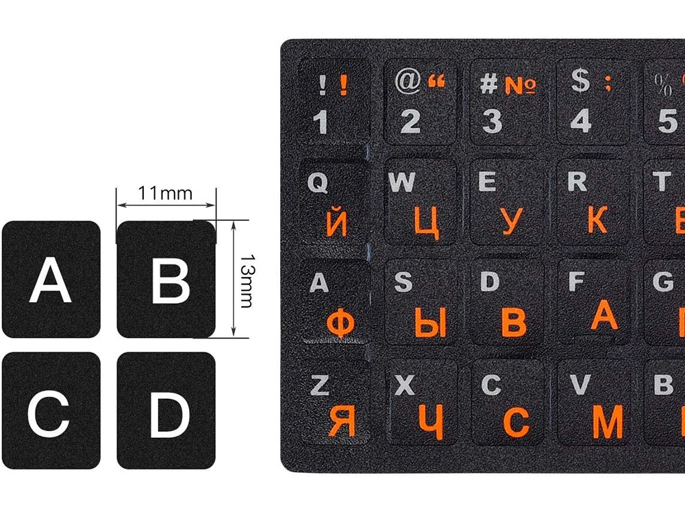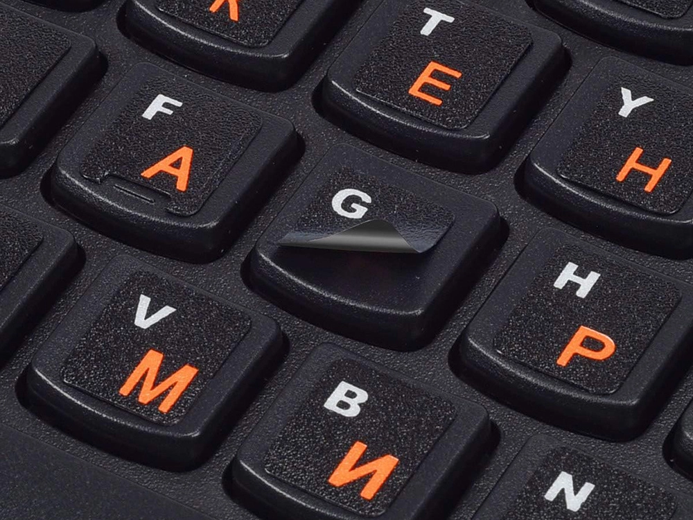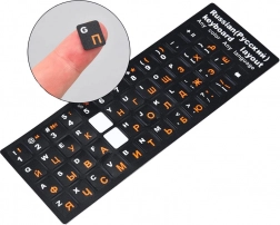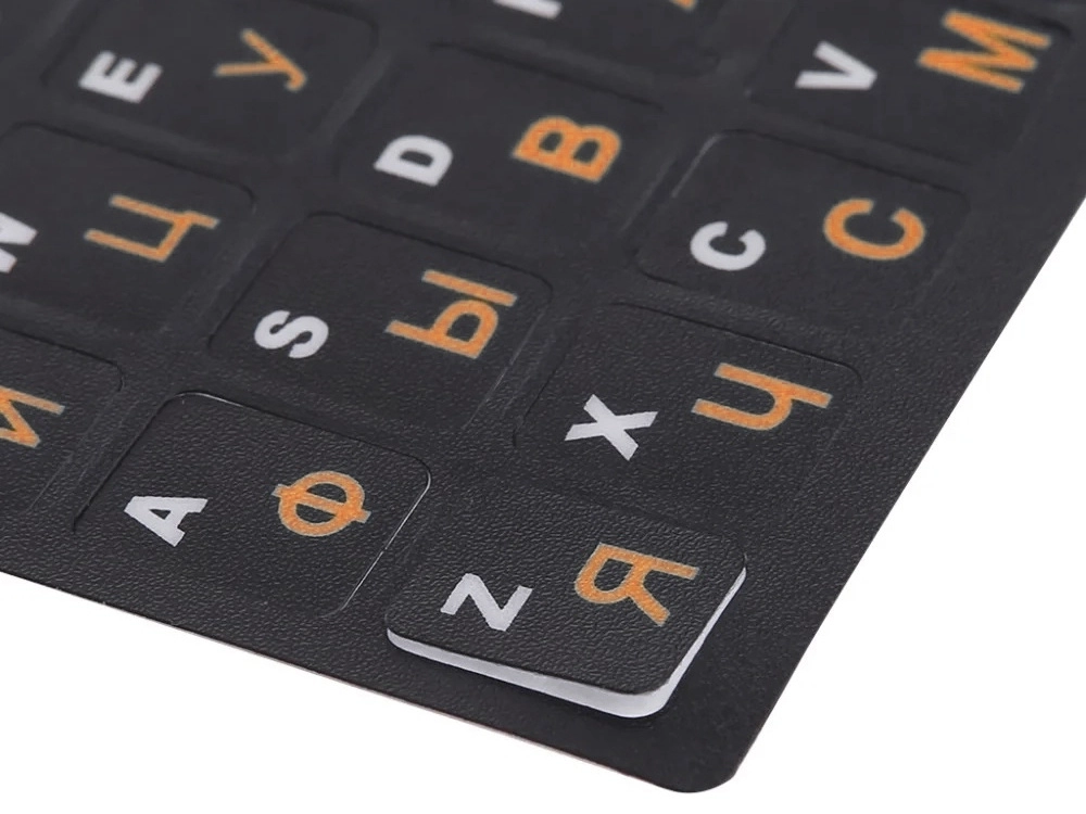 Die Aufkleber enthalten sowohl lateinische (QWERTY-) als auch kyrillische Zeichen - sie sind in kontrastreichen Farben gedruckt, sodass das Tastaturlayout übersichtlich und bequem für den täglichen Gebrauch bleibt. Die Aufkleber sind dünn, stehen nicht hervor und stören nicht beim Tippen.