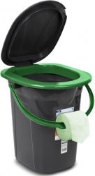 Hergestellt aus strapazierfähigem Kunststoff, verfügt die Toilette über eine dichte Konstruktion, die effektiv das Austreten unangenehmer Gerüche verhindert. Der Transportgriff dient als Halterung für Toilettenpapier und die spezielle Vertiefung im Boden erleichtert das Entleeren des Behälters.