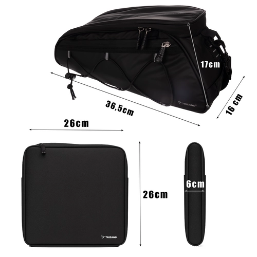 Das Set wasserfester Fahrradtaschen von TRIZAND eignet sich perfekt für all Ihre Ausflüge und alltägliche Fahrten. Die Haupttasche hat eine thermische Isolationsschicht, die hilft, Lebensmittel und Getränke in der gewünschten Temperatur zu halten. Jede Tasche ist für einfache Handhabung konzipiert und bietet ausreichend Platz für Ihre Bedürfnisse.