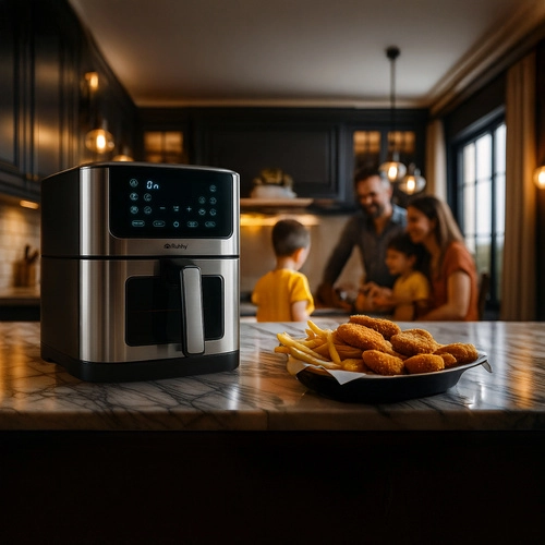 Die Ruhhy Fritteuse bietet sicheres Frittieren ohne Fett, was Ihnen ermöglicht, Ihre Lieblingsgerichte in gesünderer Form zuzubereiten, ohne den Geschmack zu beeinträchtigen. Ihre antihaftbeschichtete Oberfläche erleichtert die Reinigung und das moderne Design passt perfekt in Ihre Küche.