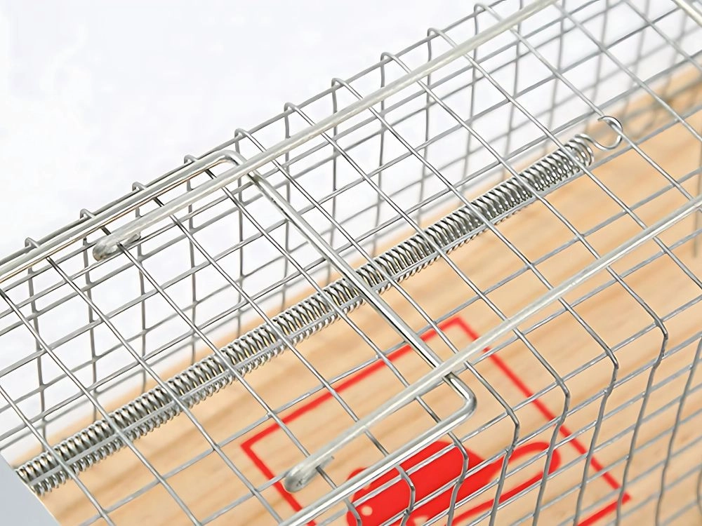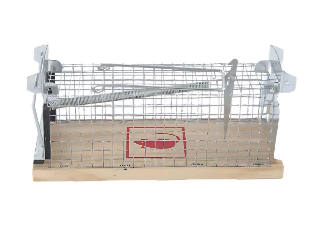 Diese Metallfalle ist für sicheres und effektives Einfangen von kleinen Schädlingen konzipiert, ohne den Einsatz von Giften. Sie besteht aus Stahldraht und einer Holzgrundlage, was Haltbarkeit und sichere Handhabung gewährleistet.