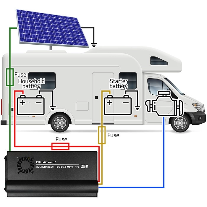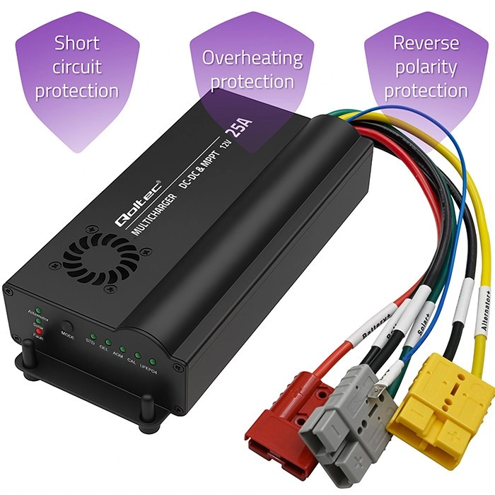 Das Qoltec DC-DC 12V Ladegerät bietet ein intelligentes 3-stufiges Laden, das umfasst: