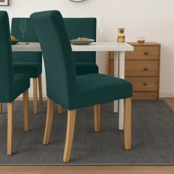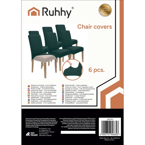 Stuhlhussen RUHHY sind aus weichem und elastischem Velours gefertigt, der das Aussehen Ihrer Stühle schützt und auffrischt. Sie passen sich perfekt der Form der Möbel an und verleihen dem Interieur ein gemütliches und elegantes Aussehen.