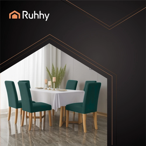 Die sehr flexiblen Stuhlhussen RUHHY zeichnen sich durch weichen und eleganten Velours aus, der sich perfekt an die Form Ihrer Stühle anpasst und dank integrierter Gummielemente einen stabilen Halt bietet.
