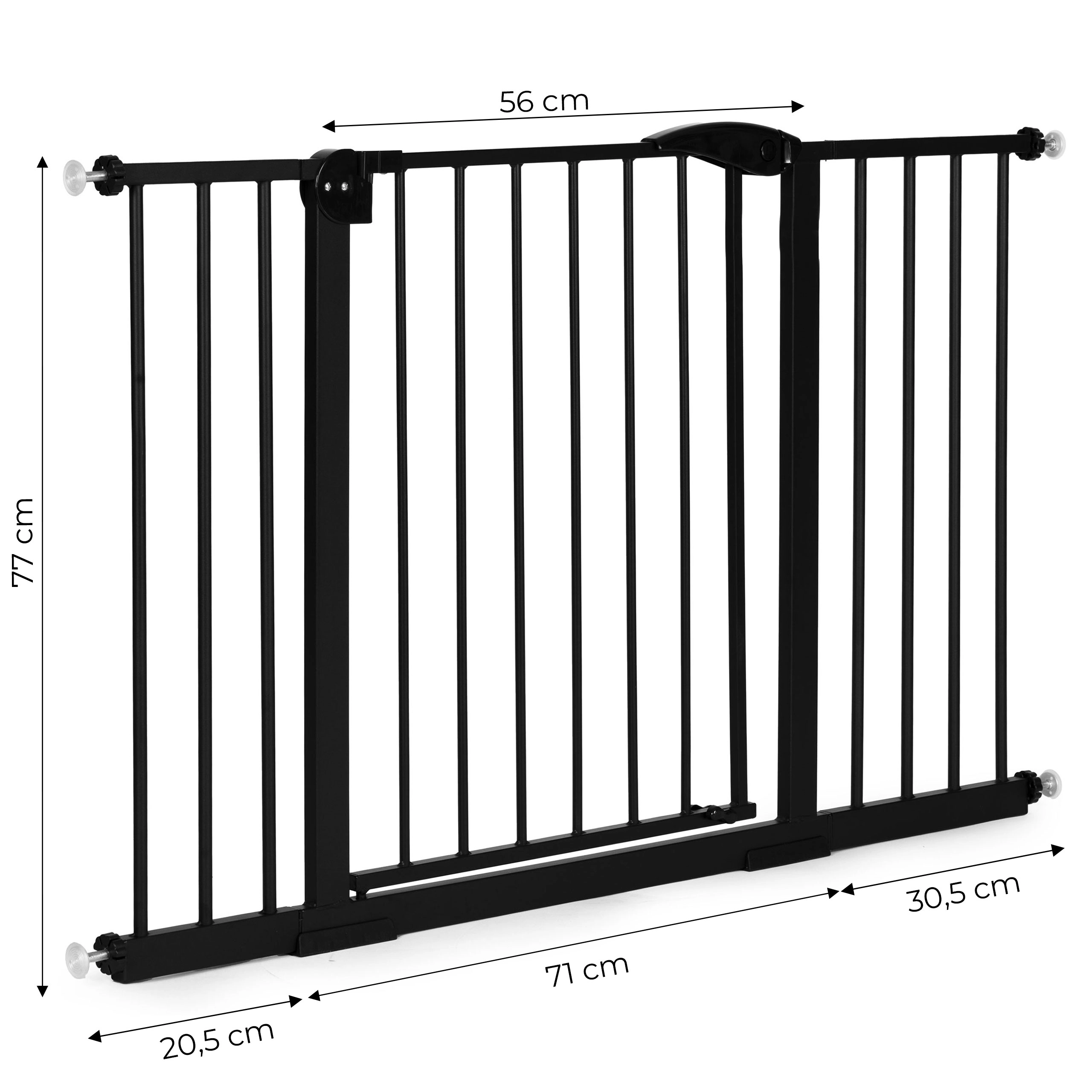 Einfache Installation ohne Bohren, dank des 4-Punkt-Druckmontagesystems, das die Barriere fest an Ort und Stelle hält, ohne Wände oder Rahmen zu beschädigen. Wenn Sie eine dauerhafte Befestigung bevorzugen, können Sie die beigefügten, speziell geformten Unterlagen und Schrauben verwenden.