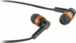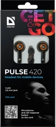 Genießen Sie erstklassigen Klang mit den schwarz-orangen Kopfhörern Pulse, die über ein eingebautes Mikrofon für einfache Kommunikation verfügen.