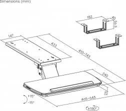 In Sachen Funktionalität ist der Halter mit einem ausziehbaren Mausfach ausgestattet, das sowohl nach rechts als auch nach links herausgezogen werden kann, ideal für Rechts- und Linkshänder. Außerdem ermöglicht er die Einstellung des Neigungswinkels der Tastatur um 15 Grad, was dem Benutzer erlaubt, den Arbeitswinkel anzupassen, wodurch die Spannung in Handgelenken und Unterarmen verringert wird.