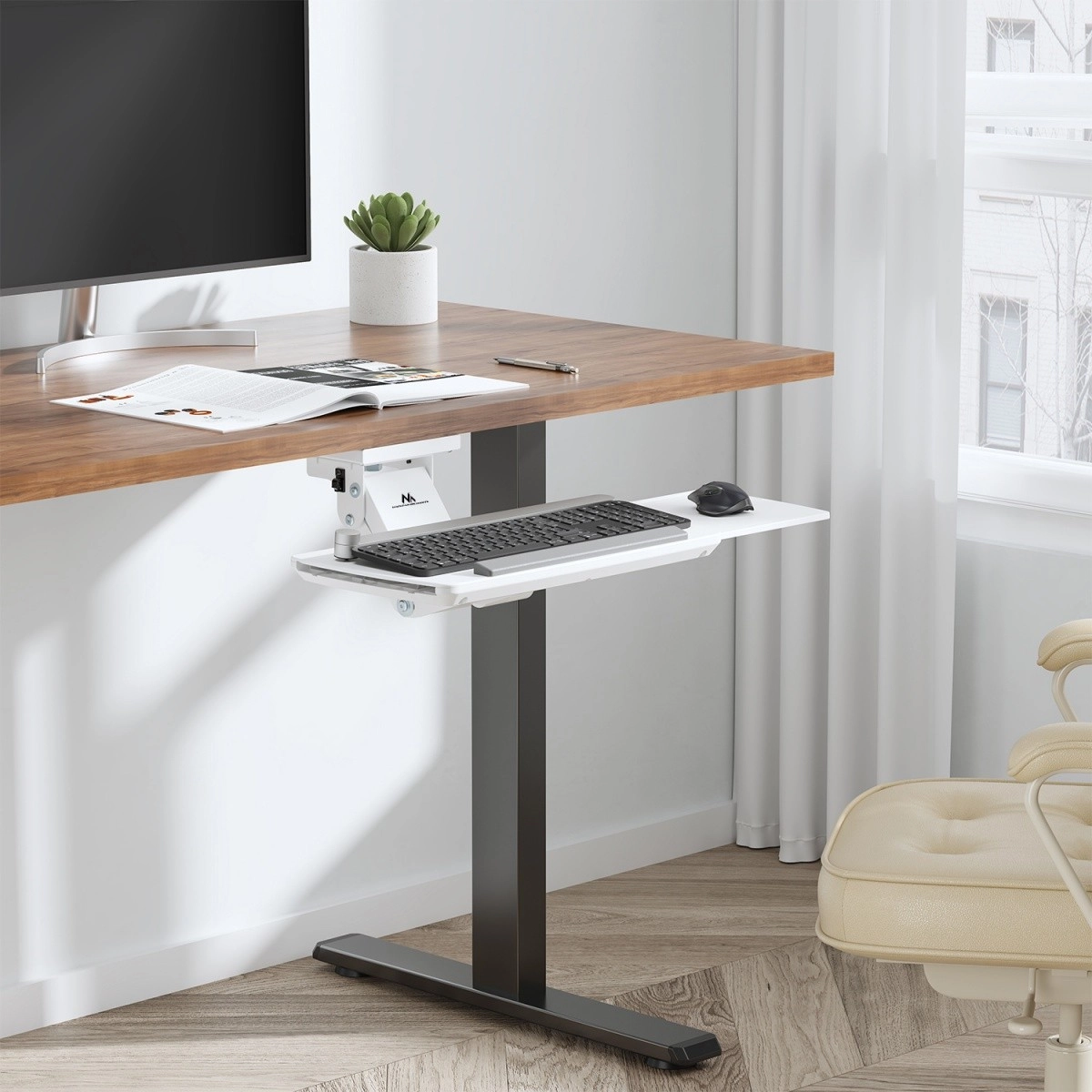 Tastaturhalter MC-156 wurde für diejenigen entworfen, die Ordnung und Komfort an ihrem Arbeitsplatz schätzen. Die Montage unter dem Tisch ermöglicht eine effiziente Nutzung des Arbeitsraumes, während die feste Konstruktion Stabilität und Langlebigkeit gewährleistet. Der Halter kann Tastaturen bis zu einem Gewicht von 5 kg tragen, was ihn sowohl für leichte als auch schwere Modelle geeignet macht.