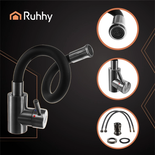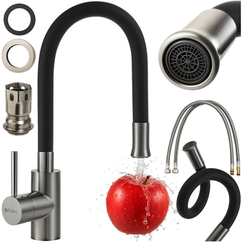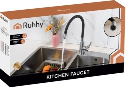 Küchenarmatur Ruhhy bringt Komfort und Einsparungen in Ihre Küche dank des flexiblen 360°-Auslaufs, Strahlreglers und Perlator. Genießen Sie einfache Montage, lange Lebensdauer und einfache Reinigung.