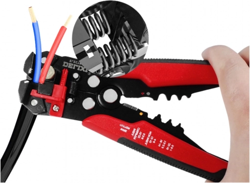 Automatische 3-in-1-Abisolierzange für die Arbeit mit Leitungen und Kabeln verschiedener Durchmesser. Dank des automatischen Frontmechanismus entfernen Sie die Isolierung schnell und präzise ohne die Adern zu beschädigen, ermöglichen das Crimpen von isolierten und nicht isolierten Steckverbindern sowie das Schneiden von Leitungen. Ergonomische rutschfeste Griffe, Kraftverstellung und Längenanschlag sorgen für komfortables und reproduzierbares Arbeiten zu Hause und in der Werkstatt.