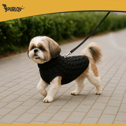 Der wärmende Strickpullover von PURLOV hält Ihr Haustier auch an kalten Tagen warm und bequem. Das feine Acrylgarn fühlt sich angenehm an, reizt die Haut nicht und schränkt die Bewegung dank seiner Elastizität nicht ein. Er lässt sich leicht anziehen, hat 2 Öffnungen für die Vorderpfoten und eine praktische Leinenöffnung.