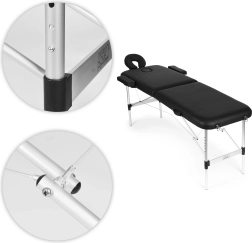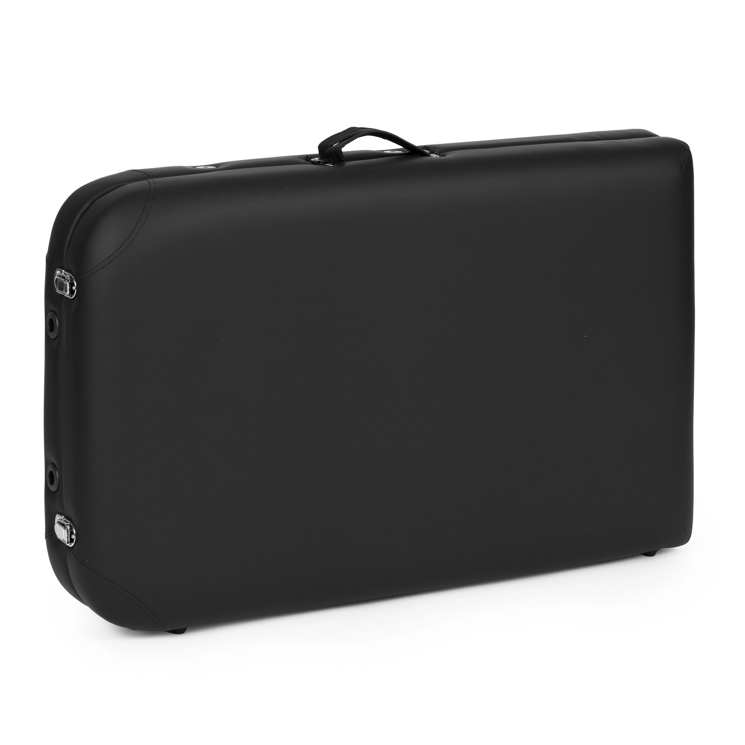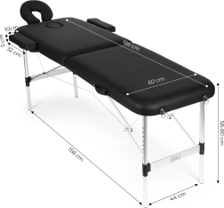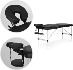 Für den Komfort der Klienten sorgen eine verstellbare Kopfstütze mit stufenloser Winkel- und Höhenregulierung, eine Gesichtsöffnung mit Abdeckung für bequemes Liegen in Bauchlage sowie eine hängende Unterarmablage für eine natürliche Armposition. 5 cm starker Schaum und leicht abwischbares PVC-Leder gewährleisten Hygiene und Langlebigkeit.