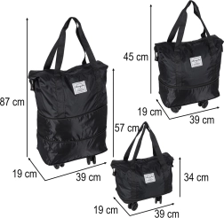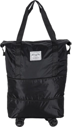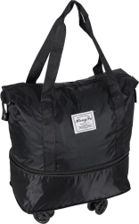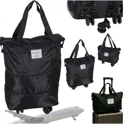 Zusammenklappbare Reisetasche mit Rollen, geräumig, 3 Größen, schwarz