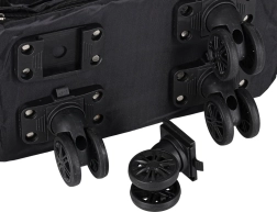 Leichtes Manövrieren gewährleisten 360° drehbare Rollen aus PVC, die zudem abnehmbar sind und auf stabilen Schienen sitzen. Praktische Außen- und Innentaschen halten Kleinigkeiten griffbereit, seitliche Griffe und hohe Tragehenkel erleichtern das Tragen und Ziehen.